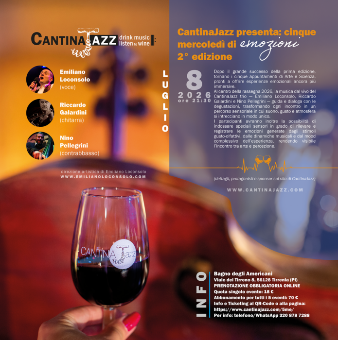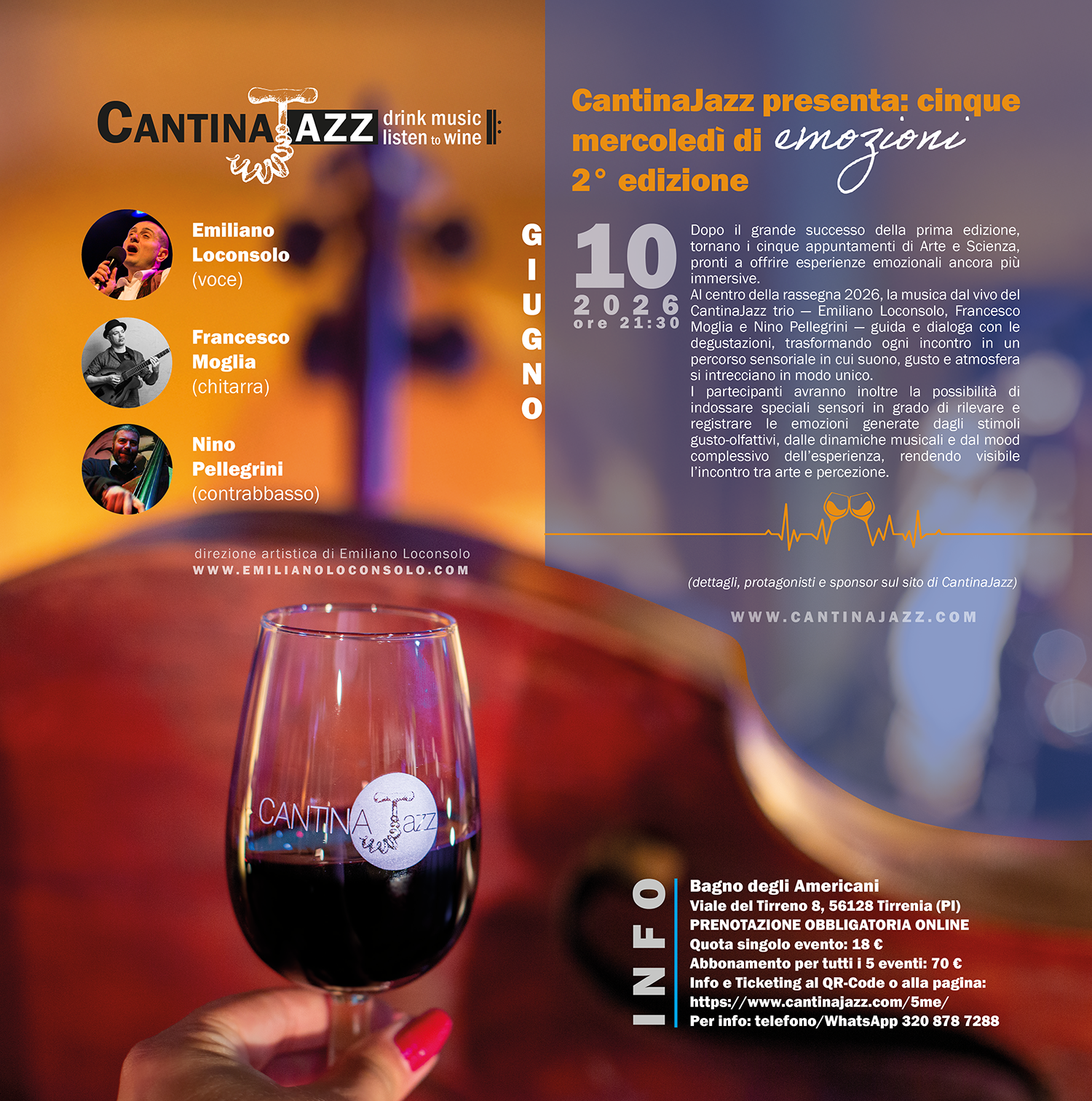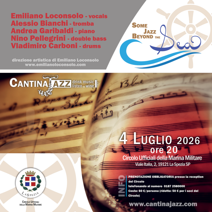 First appointment of 2026 where jazz and fine wine meet the sea — the chapter of CantinaJazz named “Some Jazz Beyond the Sea”. The CantinaJazz Quintet will dive into a wave of swing and Mediterranean soundscapes, celebrating the dialogue between music and the mystery of the sea.