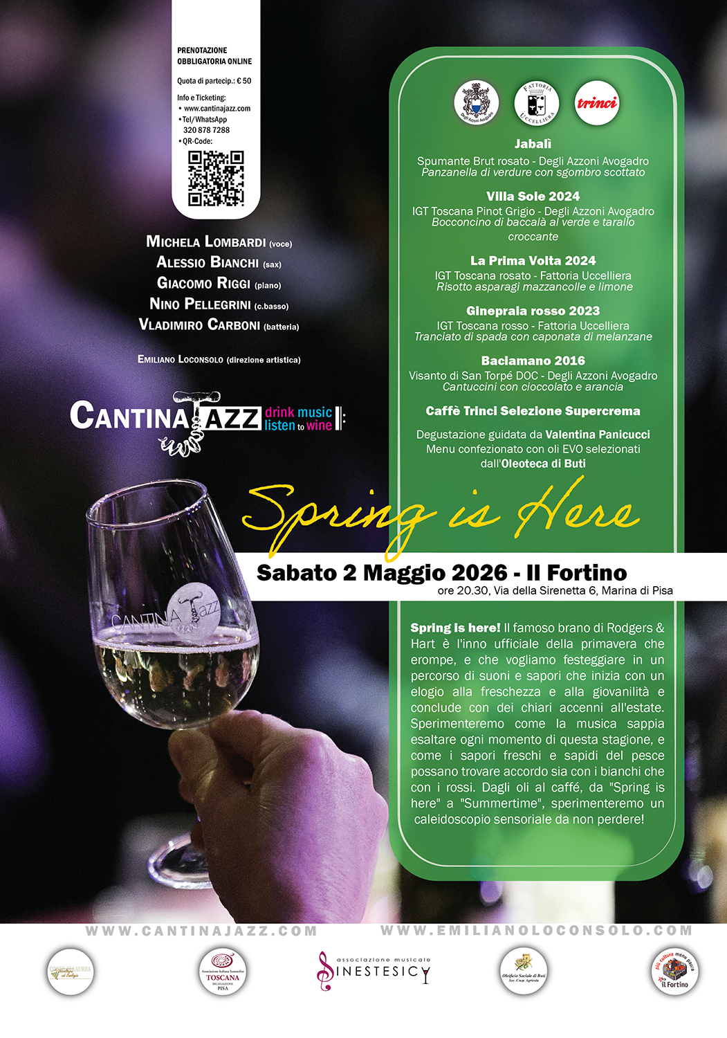 Second appointment of 2026 where jazz and fine wine meet the sea — the chapter of CantinaJazz named “Some Jazz Beyond the Sea”. I am thrilled to announce that this time I will be on stage performing with the CantinaJazz Quintet, after missing the April 2026 and the October 2025 events.