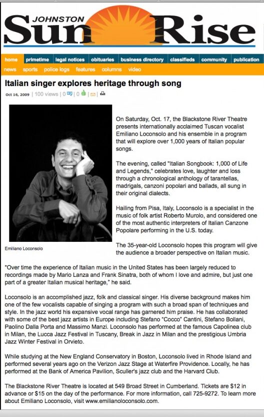 Hailing from Pisa, Italy, Loconsolo is a specialist in the music of folk artist Roberto Murolo, and considered one of the most authentic interpreters of Italian Canzone Popolare performing in the U.S. today.